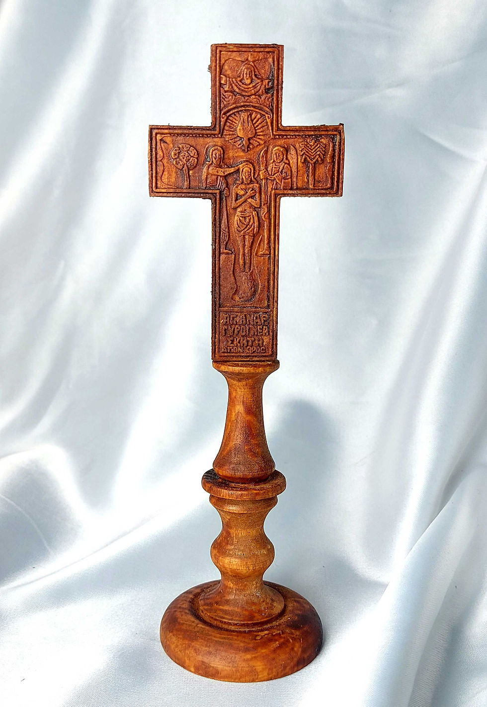 Cross Byzantine Paper On Wood Evangelists Representations 24 x 30cm